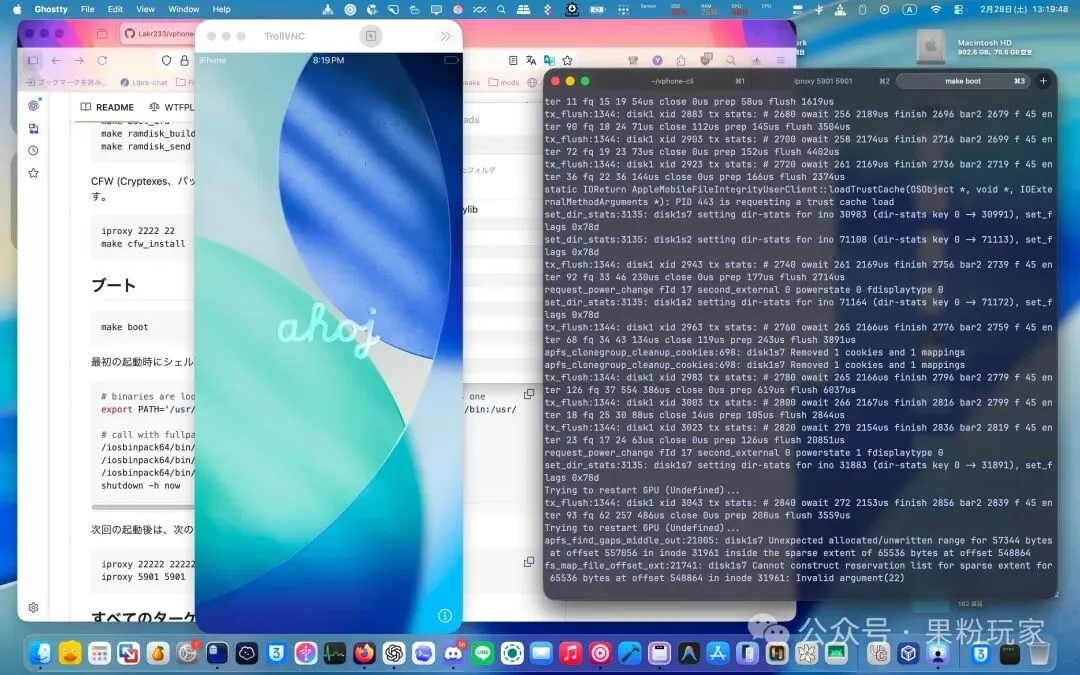 高潮也来了,开发者 Lakr233 在 wh1te4ever 大佬的基础上修复并简化一些操作,更易于操作了。所以,iOS 社区更加活跃了,各位开发者都开始操作 +晒图了!结论重点:是在电脑上虚拟 iOS 系统!