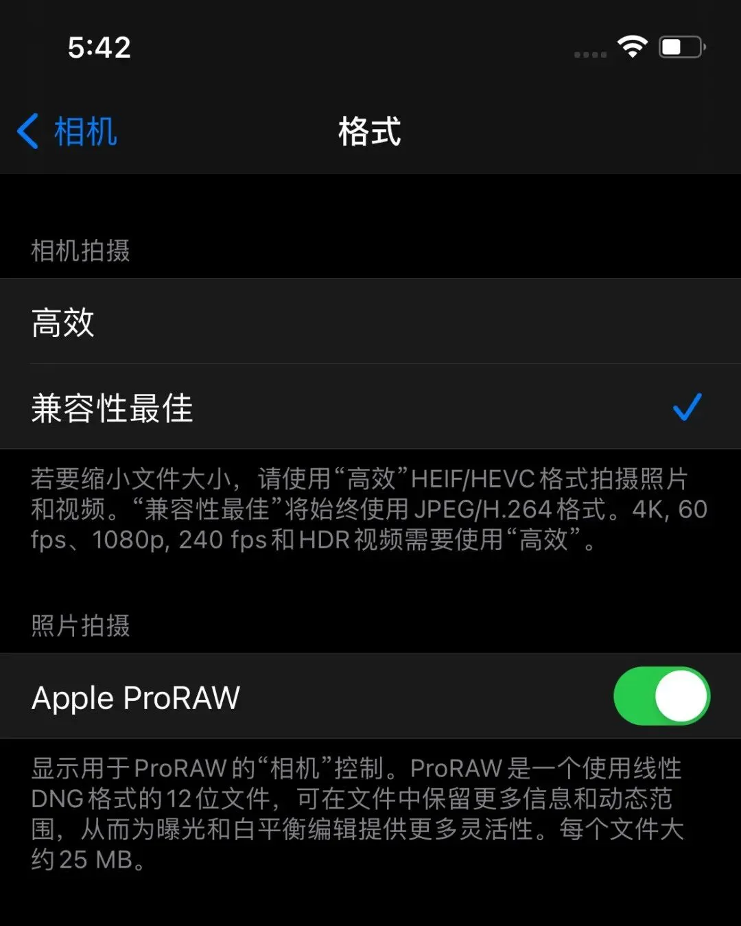 更新了 iOS14.3 以后,iPhone 12 Pro 系列用户,只需要在设置页面中,找到「相机」,再点击「格式」,便可开启「Apple ProRAW」。