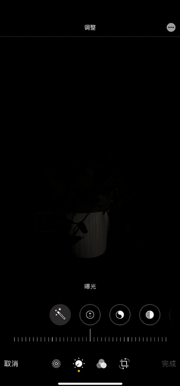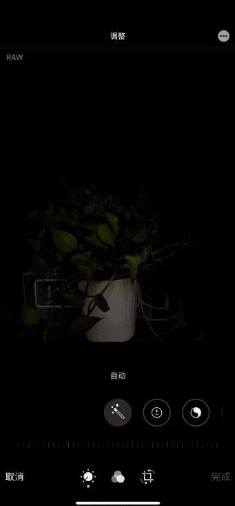 接着我又在更暗的环境下拍摄了两张照片,并尝试用自带的编辑工具,进行了一些简单调整。