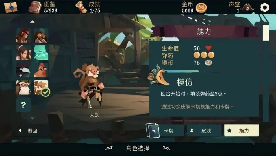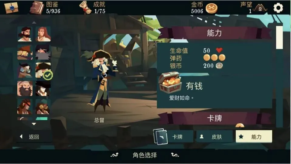 航海奇闻是一款Roguelike卡牌游戏,操作十分简单。快来挑选一位海盗,在回合制的战斗系统中,管理好我们的牌库和子弹数来击败敌人!