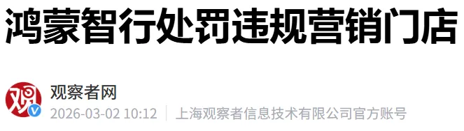 今日,针对鸿蒙智行部分区域门店在短视频平台发布车型营销视频时,使用加速、倒放素材且未标注引发的争议,鸿蒙智行已对“门店短视频违规营销”事件做出处罚。而涉事门店已删除相关视频并公开道歉。