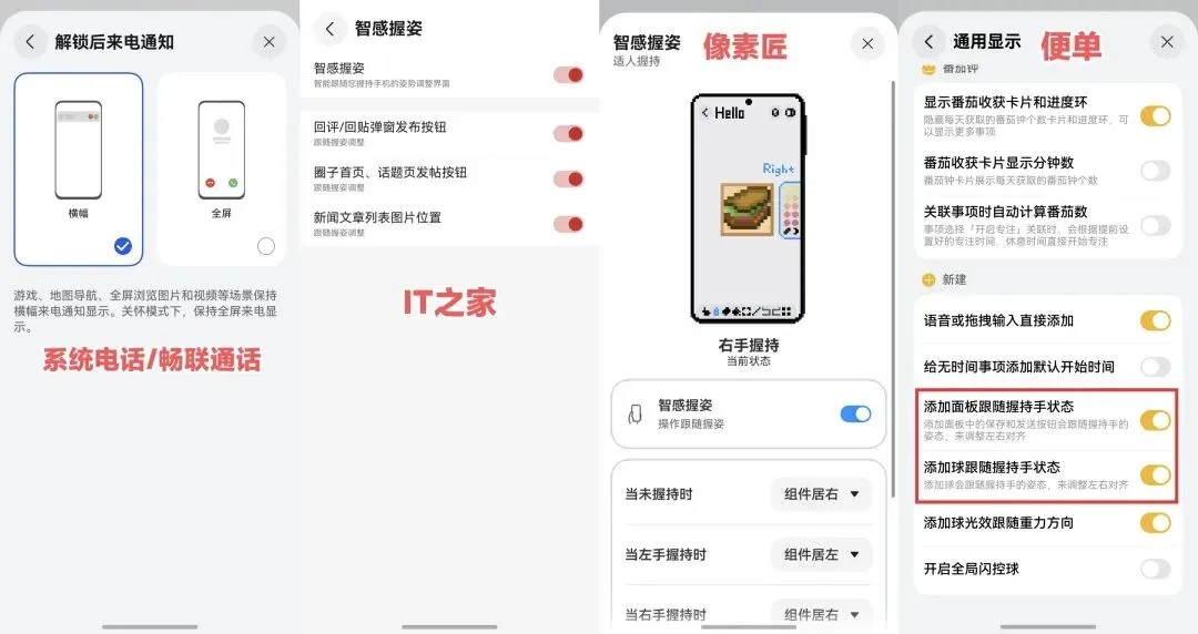 无论是鸿蒙版的微信语音、钉钉飞书的会议邀请,还是你侧躺在床上刷IT之家看资讯时的点赞评论键,都能根据你的左右手自动换边。