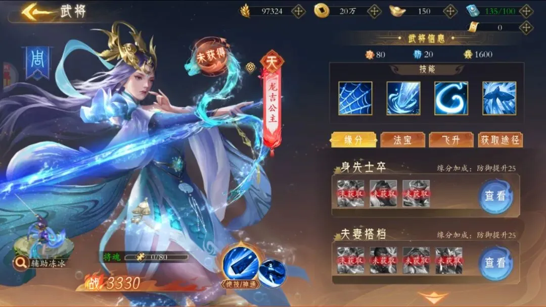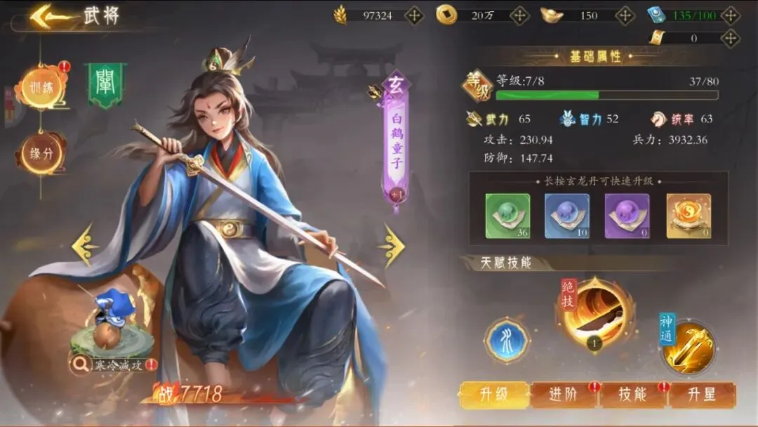 7、下面我们可以使用获得的材料对上阵的封神英雄进行升级,角色分为枪、骑、盾、弓以及谋士等类型的职业,玩家可以根据策略合理组合