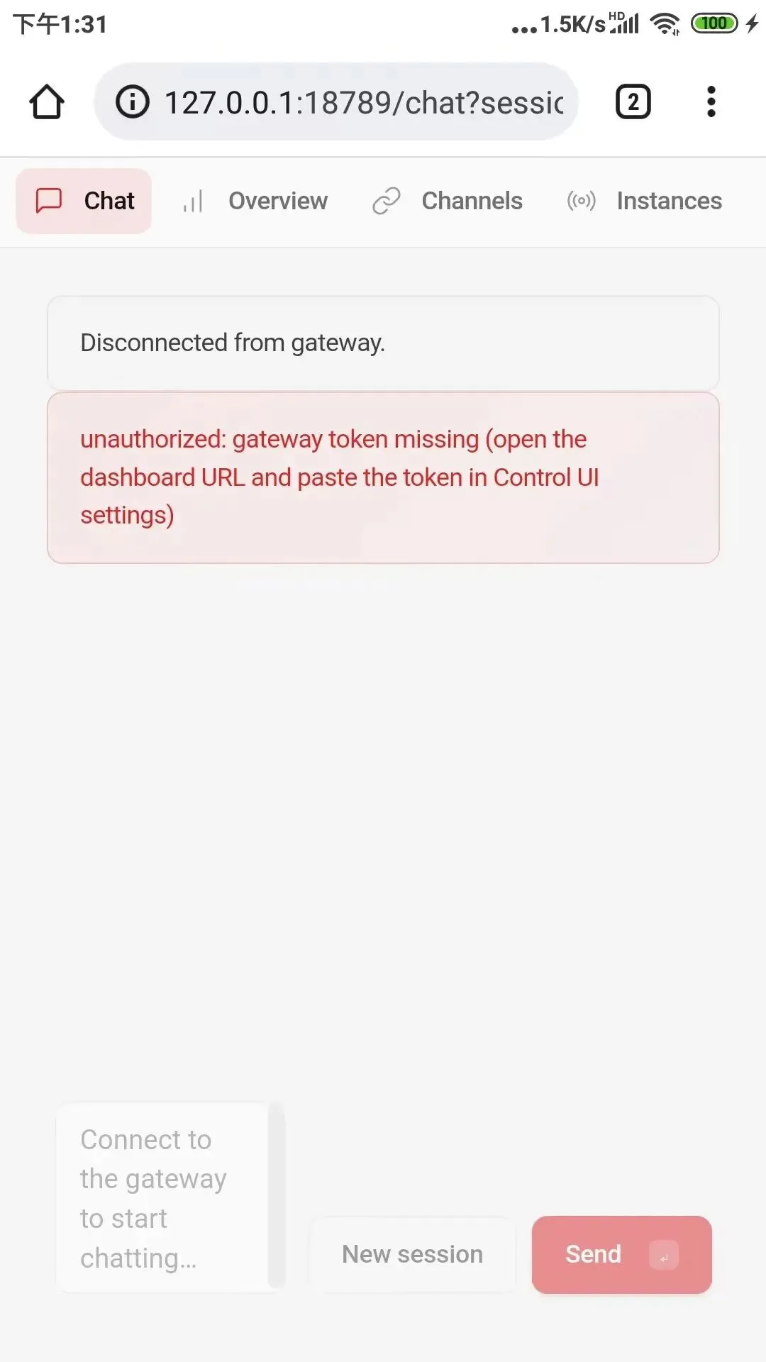 打开手机浏览器,粘贴刚才复制的地址,即可看到 OpenClaw 本地工作台。