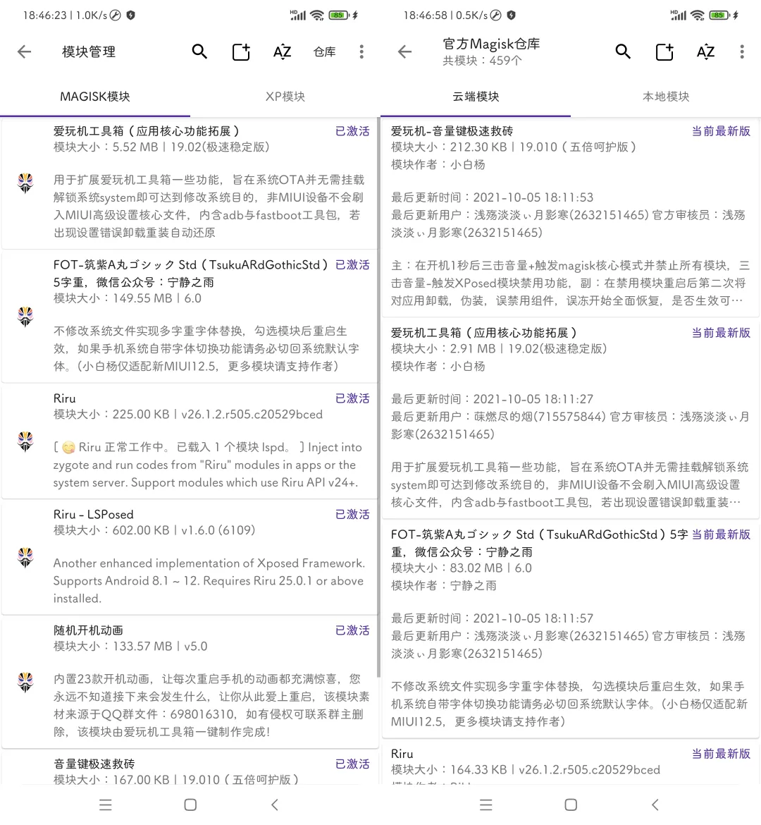 - 特色插件化功能- 独家Magisk安装器:Magisk模块安装可导出文件,可预览文件,免修复模块跨版本刷入- Magisk区:模块扫描,分享?备份?核心模式?在线更新下载?