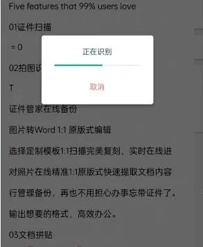 一款集文件扫描、识别翻译、图片文字提取识别、PDF文档编辑、PDF加密、PDF转Word文档转换、文档防盗、电子签名等功能于一体的多功能智能扫描仪软件。OCR识别,自动扫描,自动切边,图像美化,生成高清扫描件,还能将扫描件一键转换为 Word/Excel/PPT等多种格式文档,通过文档共享协作平台多设备同步查看,支持无线打印,全球传真。
