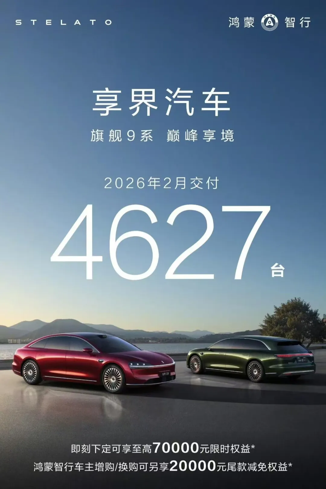 3月3日,鸿蒙智行官方公布了享界汽车最新的交付数据。数据显示,享界品牌在2026年2月共计交付新车4627台。
