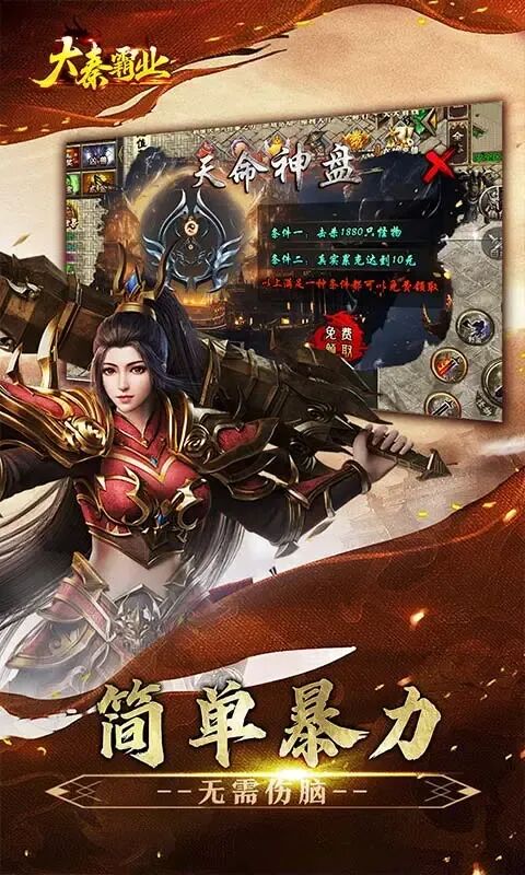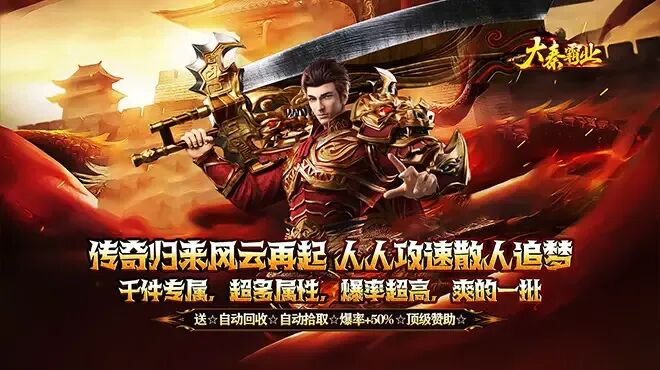《大秦霸业(碧霄暴走专属版)》上线就送自动回收,自动拾取,背包全开,仓库全开,爆率+50%!追梦赞助杀怪全免!一分不用送满顶赞!绿色生态,自由交易,散人为王!!!上千件专属,各类属性,自由搭配,爆率超高,爽的一批!超多福利以及超多BOSS等你来挑战!地图超多,海量道具,自由兑换,从不缺惊喜!超多玩法,福利多多,白嫖天堂,礼包白嫖,全部可打!极致的简单粗暴!传奇归来,风云再起!人人攻速,散人追梦!