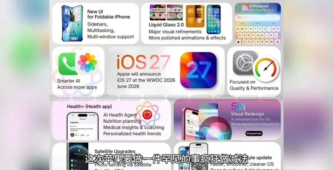 也就是说,像iOS 26里用户一直吐槽的发热、卡顿、续航差这些问题,可能在iOS 27上会迎来一次“史诗级”的改善。虽然没那么多新功能,但体验上的提升,可能会让人觉得“真香”。