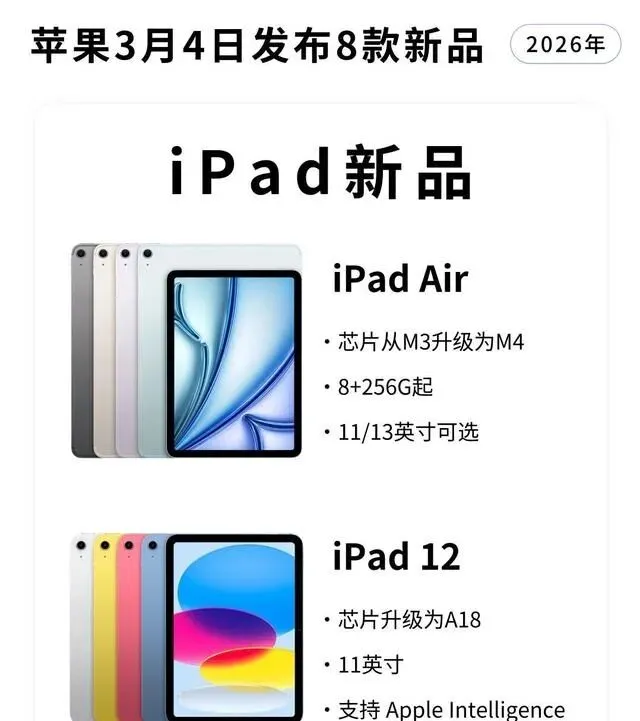 苹果3月新品全员提速,A19芯片+MagSafe回归,Mac与iPad这次全系跟上AI节奏
