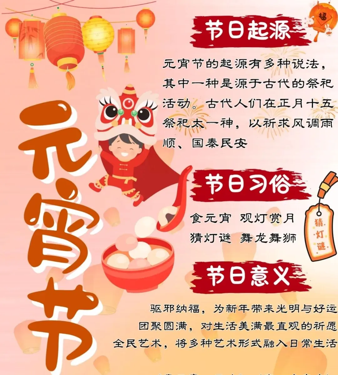 农历正月十五元宵节,是中国的特色传统节日,也是新春佳节的延续。为了让孩子们感受传统元宵节的节日气氛,增强孩子们对中国传统文化和节日习俗的了解,我园开展了喜乐元宵·共庆团圆主题教育活动,让我们一起去感受元宵节的快乐吧!