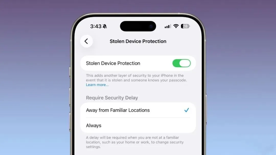 然后被盗设备保护现在默认开启了,这功能最早在iOS 17.3引入,能防止小偷拿到手机后重置设备、查看密码,默认开启意味着苹果对用户数据安全越来越上心。