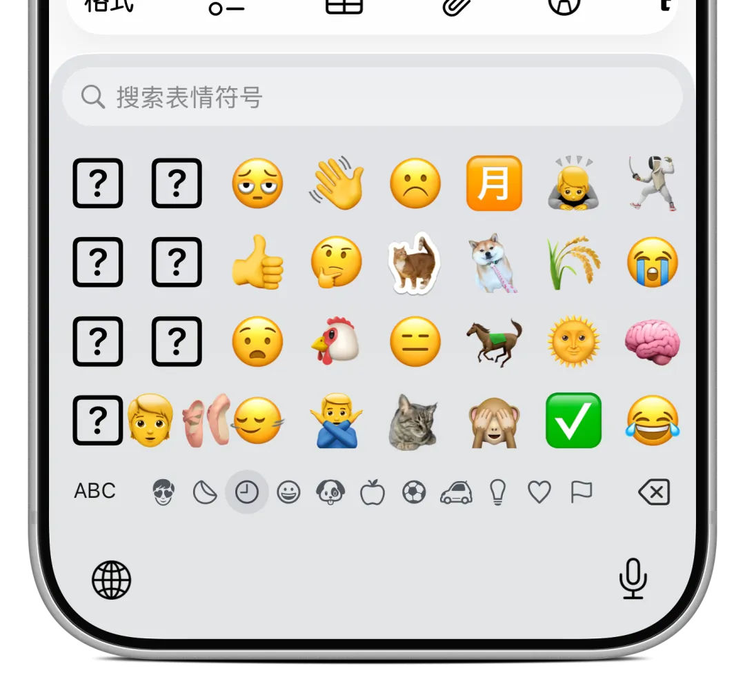 不过目前这些表情仅显示为问号占位符,苹果尚未提供正式绘制样式(如果你能正常看到上方的表情,说明你的设备已支持最新标准)。同时,Beta 3 也包含 Emoji 17.0 中的芭蕾舞者表情(实际为现有 🧑‍🩰 组合),但同样尚未完成绘制。