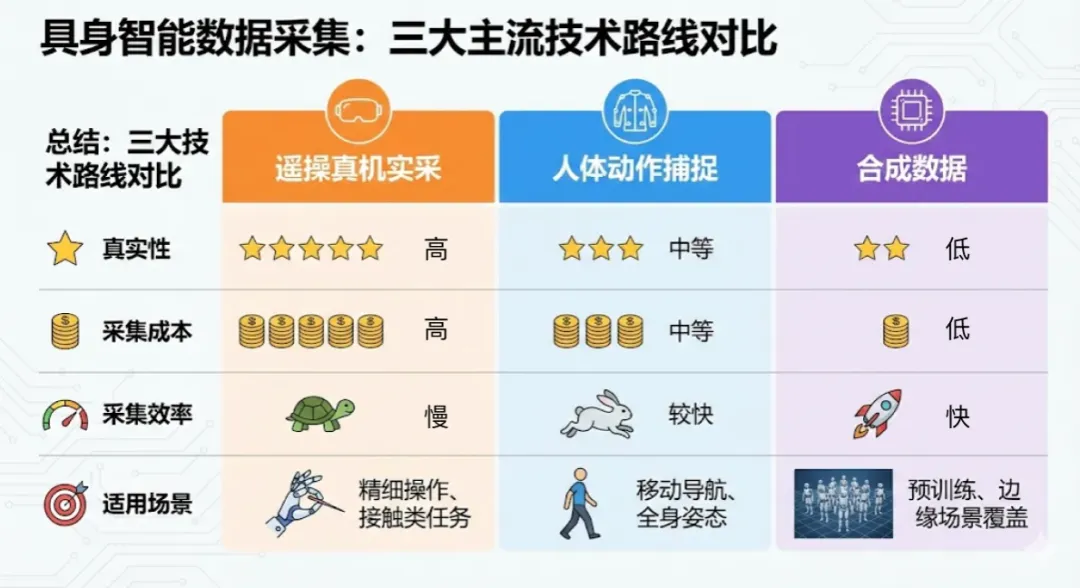 数据工厂建设面临着“高精度”与“高规模”的艰难平衡。一方是以特斯拉为代表的重资产模式,用昂贵设备换取无损数据,但扩展成本极高;另一方是斯坦福 UMI 式的轻量化模式,试图用廉价终端换取爆发式增长。工程落地的胜负手,在于能否实现用算法补偿硬件——即通过更强的后处理能力,允许使用低成本采集设备,从而在有限预算下跑通大规模量产的商业模型。