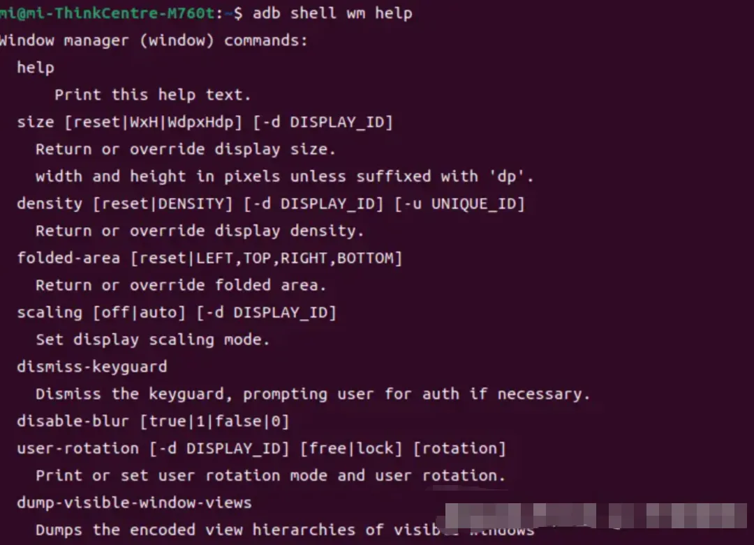 adb shell wm user-rotation free4.wm shell命令 4.1 获取帮助