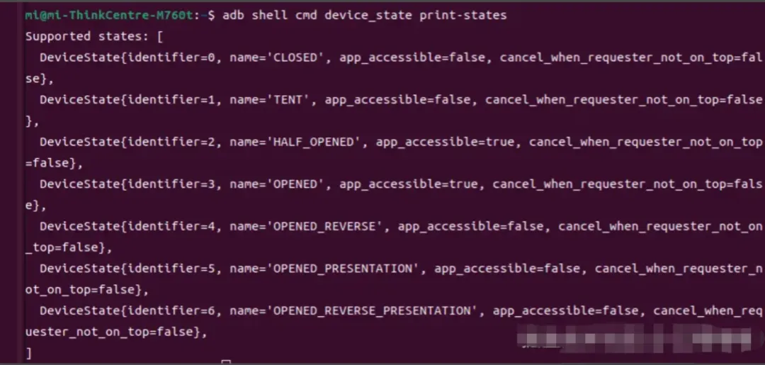 adb命令获取当前手机的折叠状态【针对折叠屏手机】。