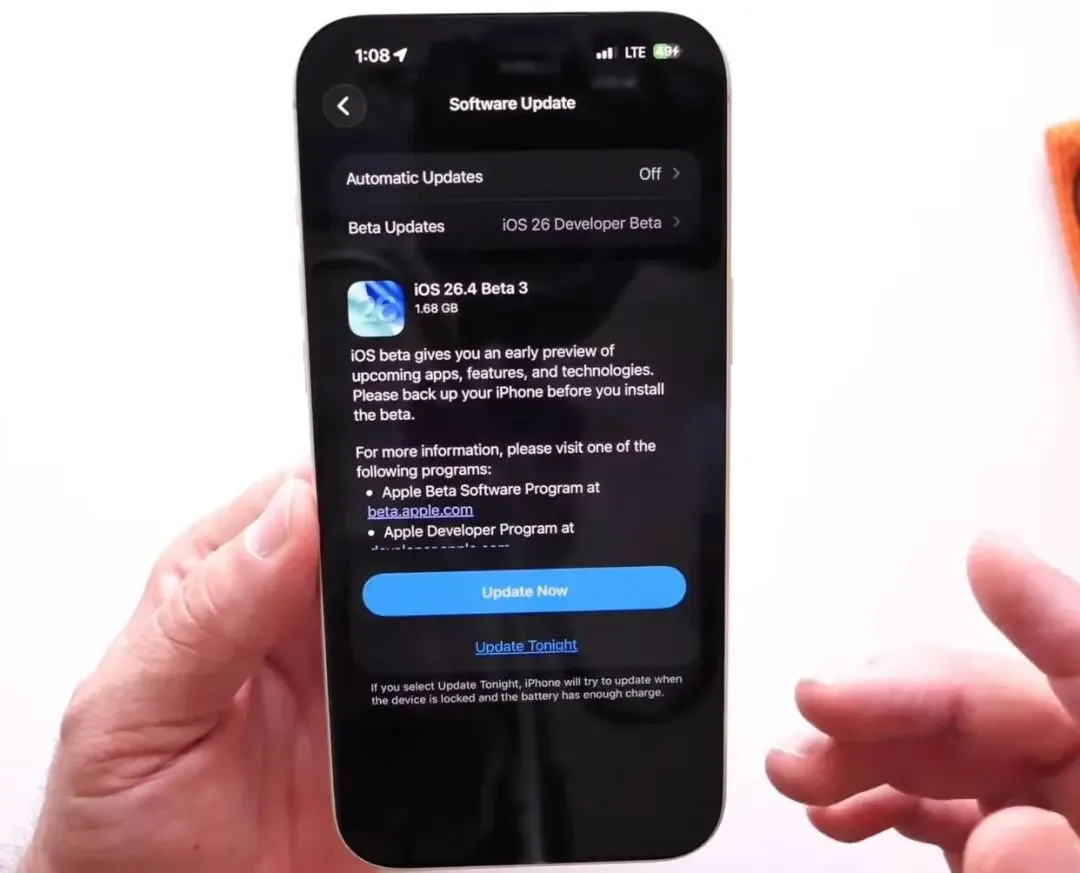 昨天天凌晨,苹果悄悄推送了 iOS 26.4 的 beta3 版本,版本号是 23E5223f。