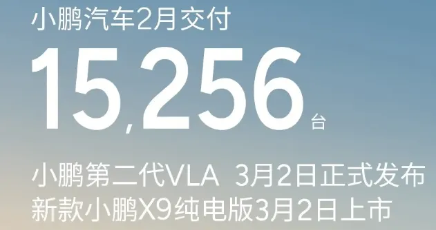 小鹏汽车:15256辆(同比环比双降,压力山大)