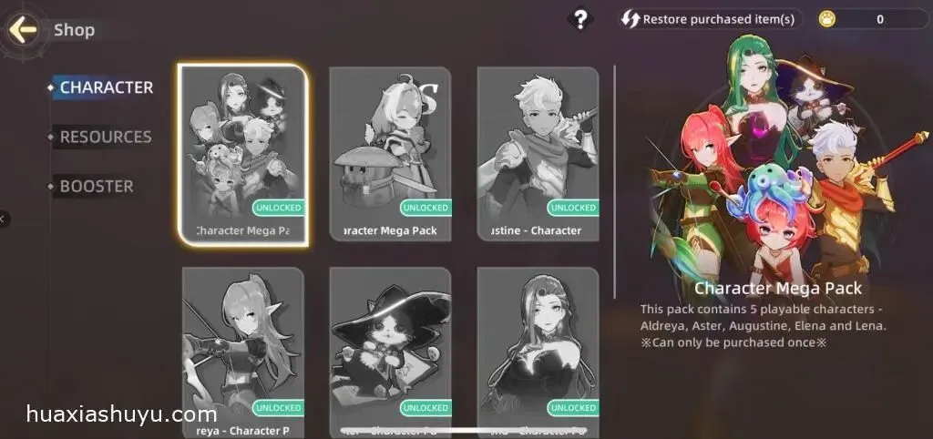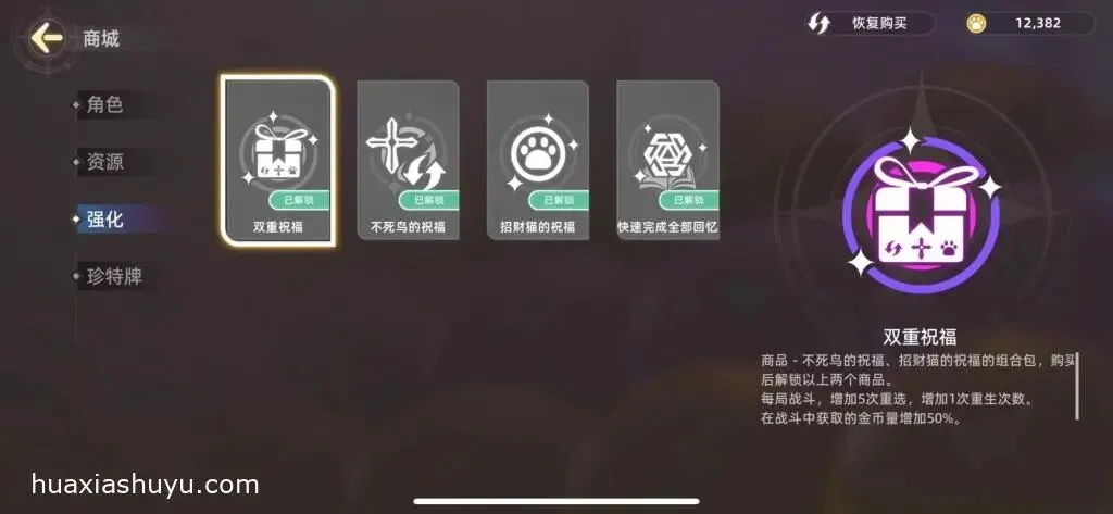 花夏数娱已解锁全角色组、双重祝福、快速完成全部回忆等dlc