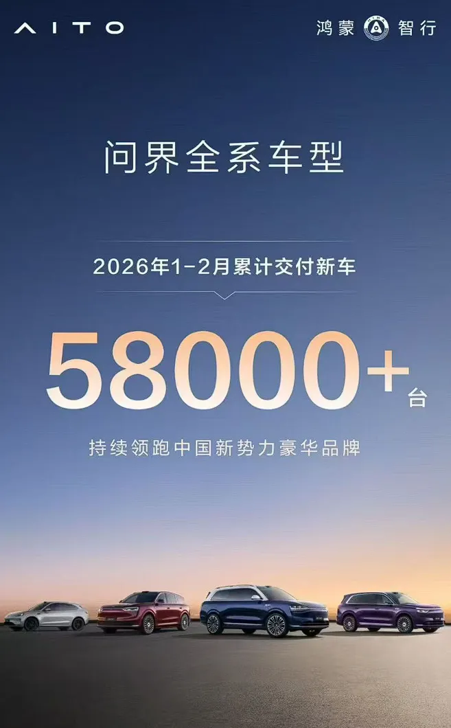 鸿蒙智行2月交付2.8万辆!问界1.8万辆,享界不到5000辆!