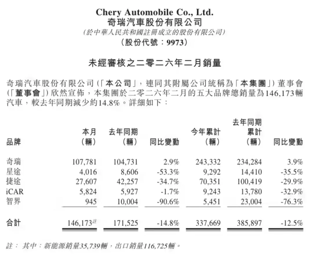 最近关于鸿蒙智行或者问界二月份交付成绩的消息不少,并且还存在一些争议,小宅总结了厂商和机构的数据,给大家看一下鸿蒙智行旗下品牌今年二月份的成绩。首先,鸿蒙智行二月份的交付成绩为28212辆,这是鸿蒙智行官方给到的数据。截止到发稿时间,鸿蒙智行旗下只有享界(华为+北汽)公布了二月份的交付成绩——4627辆。问界(华为+赛力斯)的成绩其实是综合一月份成绩来看的,问界1月到2月的交付成绩为5.8万辆以上,而一月份交付了40016辆,所以粗略来算,问界今年二月份的交付成绩为1.8万辆以上。智界(华为+奇瑞)官方虽然没有公布数据,但是从奇瑞汽车官方的公告来看,智界二月份的销量如图(奇瑞官方表示,本公告所披露之数字均属未经审核)。小宅就不写具体数字了,只是以奇瑞官方的数据作为参考。其实减掉问界、享界的数字,剩下的数字就是其他三个品牌相加的数字。2.8万减掉1.8万(问界),再减掉4627辆(享界);大概还剩五千左右,所以尊界S800+尚界H5的交付量预计在四千到五千之间。当然,二月份恰逢春节假期,而且只有28天,所以绝大部分厂商的交付数据都不好看;无论是鸿蒙智行还是问界,这个月的交付成绩相比上个月都有比较明显的下滑幅度,但小宅认为是可以接受的。另外,问界M6发布在即,这是一款非常重要的车型,是问界和鸿蒙智行今年销售增长的关键点;而之前问界给自己定的目标——两年再交付100万,能不能实现,小宅认为得看问界M6这款车型。新款问界M9L目前虽然没有确定发布时间,但随着50万级SUV市场竞争越来越激烈,极氪9X已经连续数月成为50万级大型SUV的销冠,问界M9L也确实需要站出来反击了。