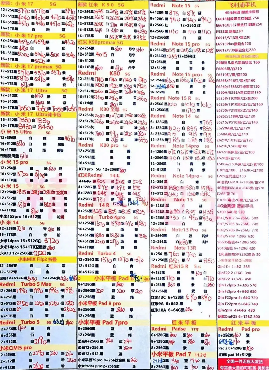 以下报价都是深圳华强北手机批发市场当天的最新批发价格(不含税),报价是我们的批发底价,零售拿货价格需加20~100元不等,京东包邮(量大价格可谈)