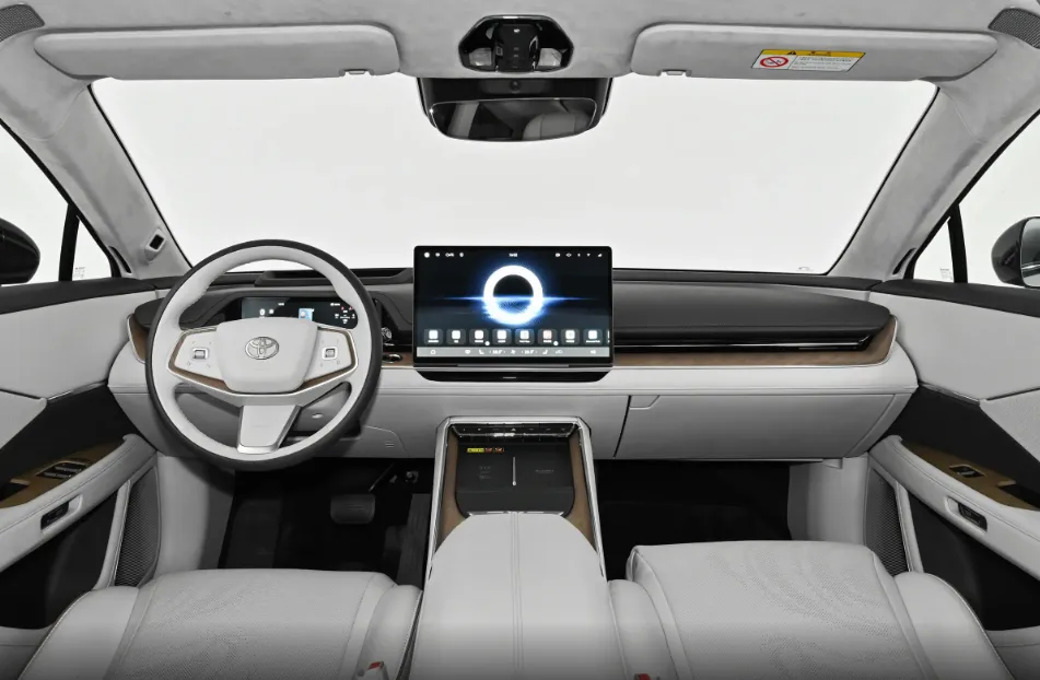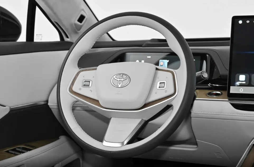 接下来,我们再欣赏铂智7的内饰设计部分,第一眼看到图片,大家就能看出现在的广汽丰田已经很懂国人了,简约大气的设计风格挑不出什么毛病,基本已经完全脱离印象中丰田燃油车的内饰设计,已经全面拥抱新能源。内饰用料讲究厚道,除了有软面皮质还有大面积实木面板,取材自白栓木,成本偏高一些。虽然配备了大尺寸悬浮式中控屏,但依旧保留了一排物理按键,这点还是比较人性化的,并没有为了美观性而一味忽略实用性。搭载华为鸿蒙智慧座舱,在用车便利性方面完全不需要担心。