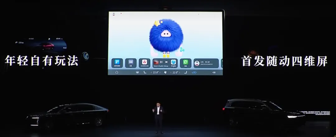 座舱层面,尚界Z7首发随动四维屏,中控屏可实现多维度旋转调节,当主驾对话时,该屏幕会自动转向主驾,副驾后排亦是如此,该技术与深蓝的“向日葵屏”有异曲同工之妙,相当实用。