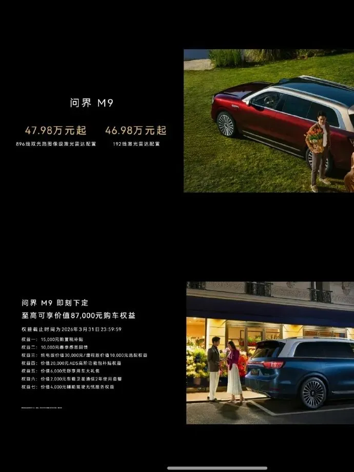 问界M9,全新图像级激光雷达版本, 47.98万起