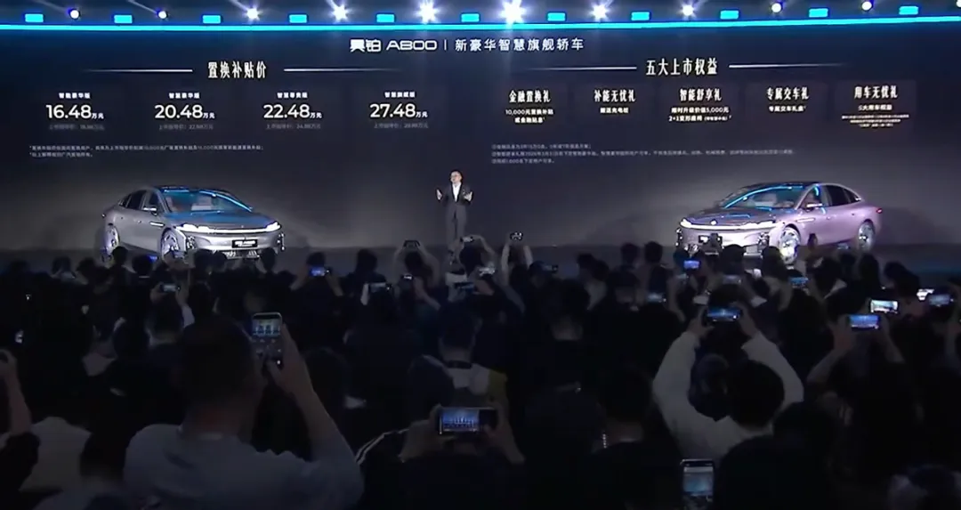 3月4日,昊铂A800正式上市,售价:18.98万元-29.98万元,置换补贴价16.48万元-27.48万元,同时提供“三担责”政策,自燃“烧一赔三”。
