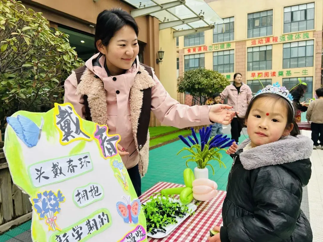 “戴春”的时刻,是春日生机的绽放。老师们为孩子们戴上春芽头饰,嫩绿的芽尖,象征着万物生长、生机勃勃。每一个孩子,都像春日里的小芽,在鸿蒙园的沃土上,向阳而生,茁壮成长。