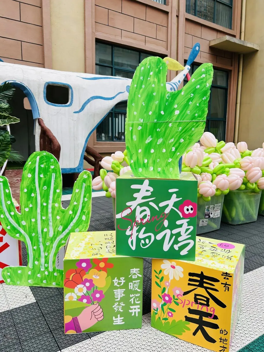 •全体教师集结,精心布置场景,让每一处角落都充满春日气息。