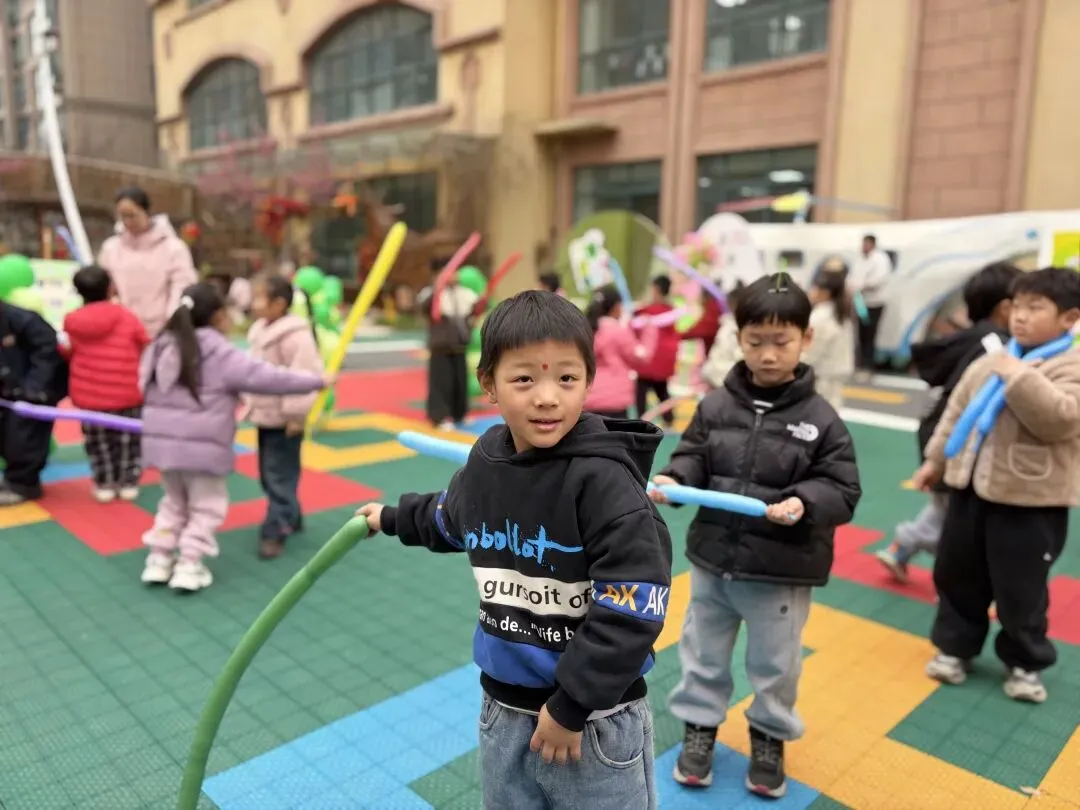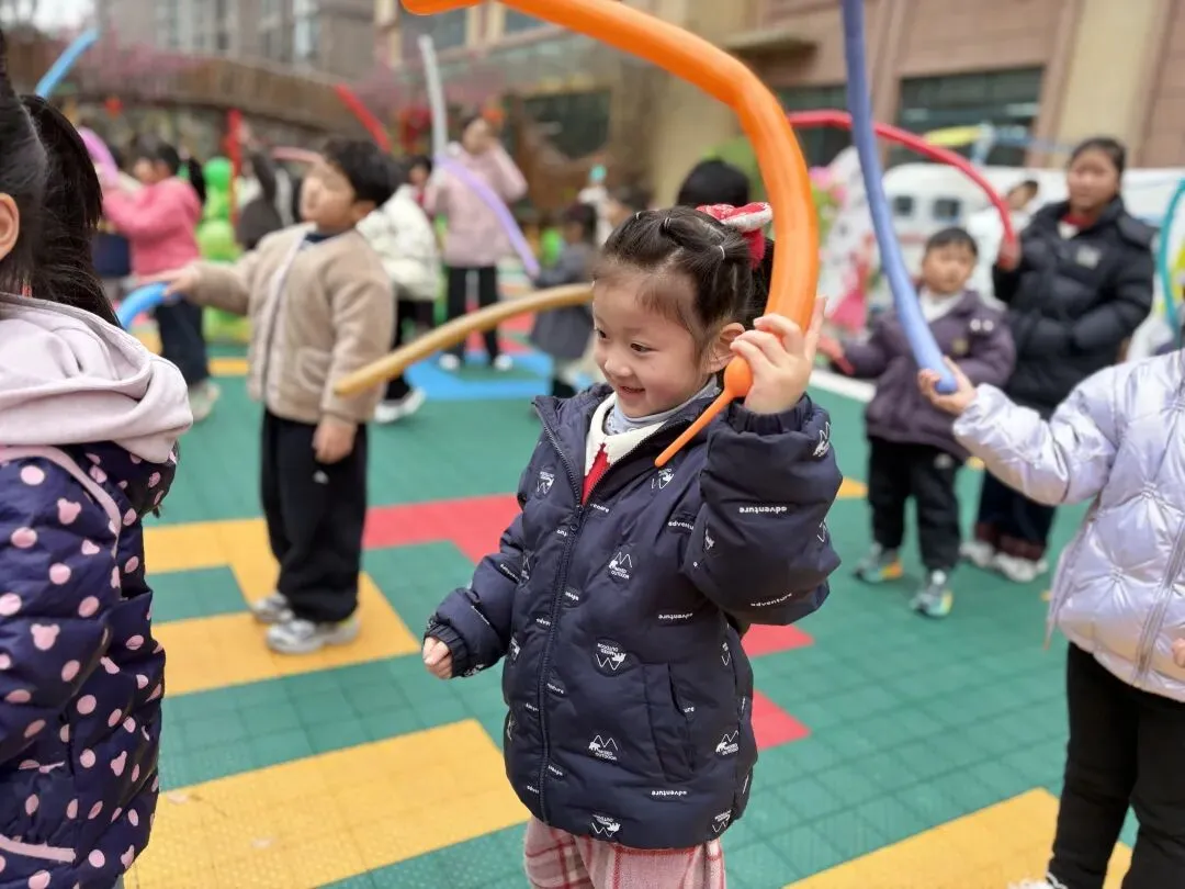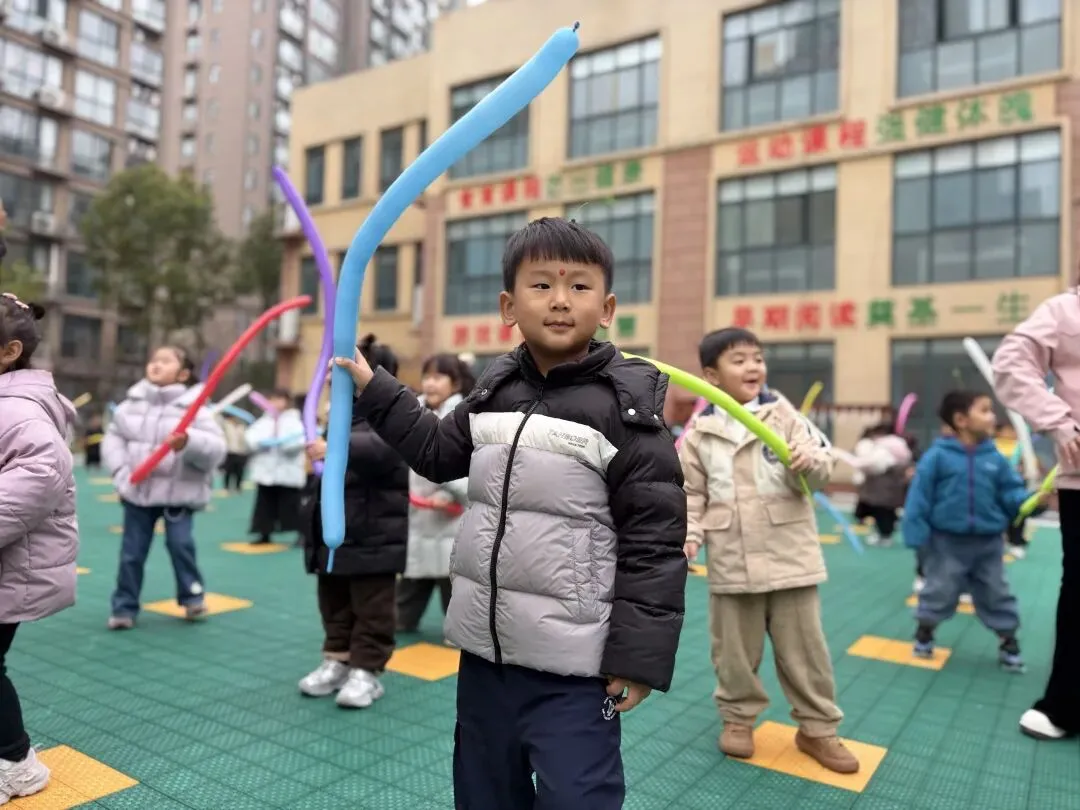 • 园内集体活动热闹开启,主持人互动、园长致辞、气球棒游戏,每一个环节都充满欢声笑语,为开学典礼画上了圆满的句号。