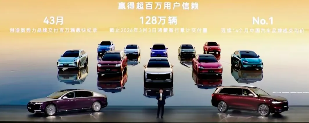 发布会上,余承东公布鸿蒙智行亮眼成绩:截至3月3日,累计交付超128万辆,创新势力百万辆交付最快纪录,连续14个月居中国汽车品牌成交均价第一。其中问界M9累计交付超28万辆,尊界S800上市9个月交付1.5万辆,均在各自细分市场实现领先。