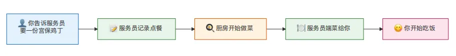 服务员(状态管理)把你的需求告诉厨房(数据层),厨房做好了自动端给你(UI自动更新),你不需要跑去厨房看菜做好了没有。