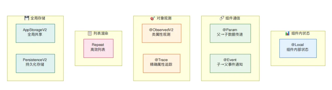 import { AppStorageV2 } from '@kit.ArkUI';// 存储数据AppStorageV2.setOrCreate('username', '小明');AppStorageV2.setOrCreate('theme', 'dark');// 读取数据const username = AppStorageV2.get<string>('username');const theme = AppStorageV2.get<string>('theme');// 删除数据AppStorageV2.delete('username');// 检查是否存在const hasKey = AppStorageV2.has('username');
