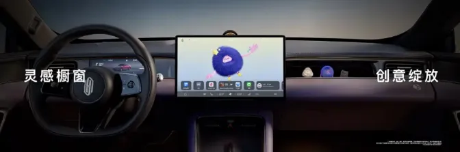 当主驾上车时,屏幕会向左偏转;副驾呼叫语音助手小艺时,屏幕会转向右侧应答。副驾前方还设有灵感橱窗储物空间,可放置毛绒手办、模型等物品,满足个性化需求。