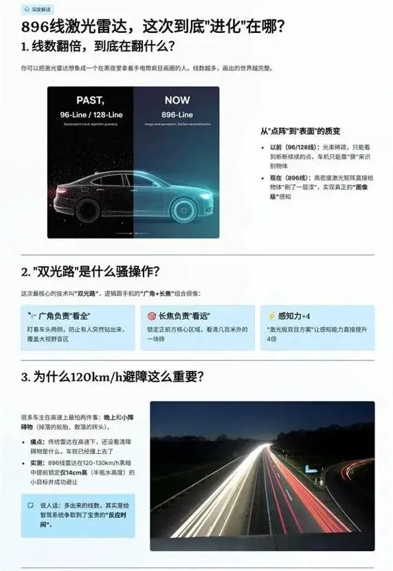 这颗 896 线还是双光路图像级,从传统点云直接升级成高清成像,分辨率比上代翻 4 倍: