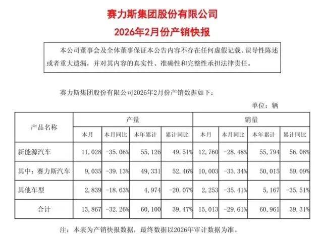 赛力斯2月产销快报爆出:产销差7000辆+库存压货疑云,等乘联会上牌数据再定