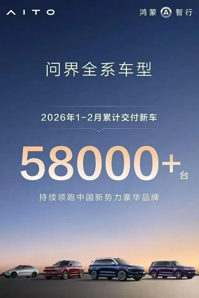 二月份的数据看起来不错,新能源汽车生产了11028辆,卖出了12760辆。单看这个产销率,还挺健康。但问题出在另一个数据上——鸿蒙智行之前给过一句交代,说问界今年一到二月累计交付了5.8万辆,而一月份的交付量是40016辆。简单做个减法,二月份问界的交付量应该是1.8万辆左右。