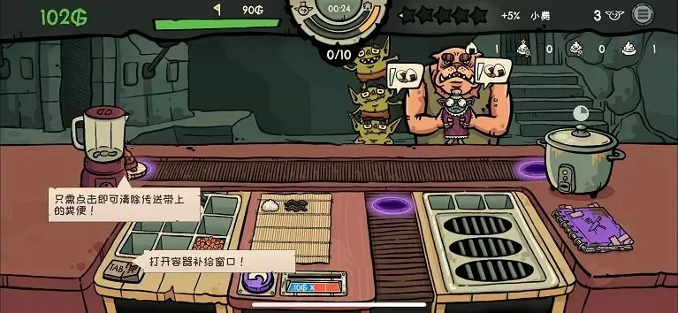 它不是传统的餐厅模拟游戏,没有优雅的用餐环境,没有挑剔的人类食客,全程围绕“哥布林开寿司店”的荒诞设定展开,把高压操作、肉鸽随机、黑色幽默完美融合,既有手忙脚乱的刺激感,又有脑洞大开的趣味性,无论是碎片时间摸鱼,还是沉浸式冲分,都能找到极致的快乐。