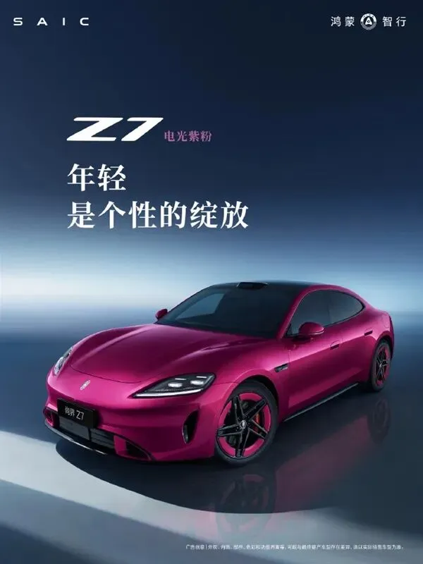 同时,尚界Z7新色电光紫粉亮相,新车还将提供多种丰富的个性化车色选择,将全方位覆盖年轻用户的多元审美偏好。