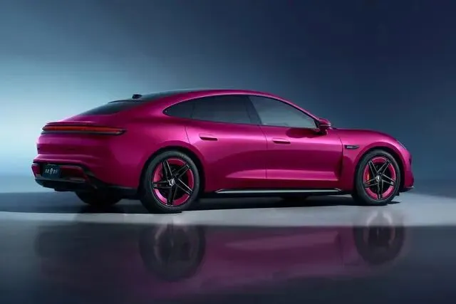 外观上,尚界Z7T的C柱前侧延续尚界Z7的经典设计,前机舱盖两侧隆起,营造出强烈的力量感;同时融入专属猎装风格,车尾造型饱满,搭配大尺寸尾翼、贯穿式尾灯与后包围黑色装饰,运动感拉满。车顶激光雷达、半隐藏式门把手、双色轮辋+黄色刹车卡钳的细节配置,更让科技感与运动感兼具,官图车型的“晚山新绿”配色也尽显高级。
