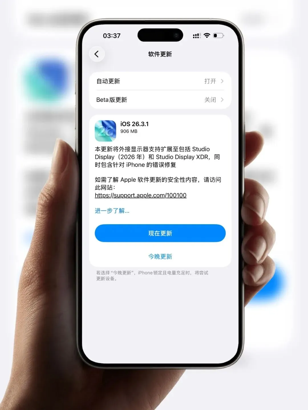 苹果紧急更新,iOS 26.3.1 正式版来了