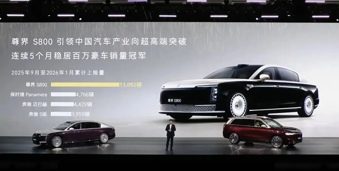 发布会伊始,余承东便满怀信心地分享了问界旗舰M9的亮眼市场表现。同为旗舰的尊界S800销量同样势不可挡,在高端市场销量超越多家传统豪华品牌同期总和,正如余承东所言,S800实现了强势的“一打三”。