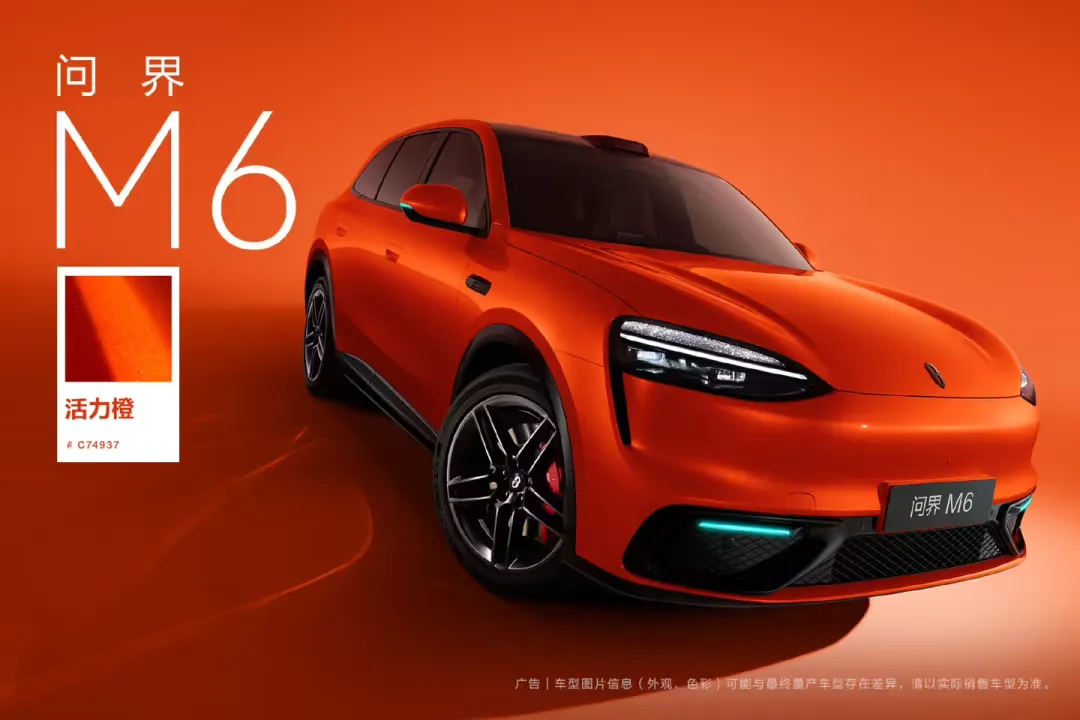 在此前2月27日,华为终端BG董事长余承东已经宣布问界M6将推出完整车身配色阵容。除了此次公布的橙色外,新车还将提供白色、黑色、银色、青色、紫色以及蓝色等多种颜色选择。