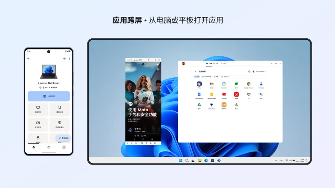 联想宣布超级互联发布,可在各大应用商店下载。提供 PC、安卓、iOS无缝连接,并且不限 PC 与安卓品牌。提供“拖一拖”手势,覆盖文件互传、屏幕共享、网络摄像头调用、键鼠穿越、热点共享等八大场景;