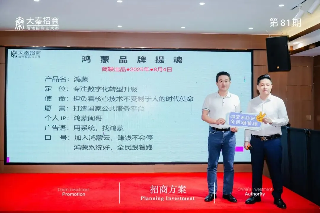 大秦招商与《鸿蒙》生态携手,在厦门举办万物互联·数字中国合作峰会。本次大会聚焦互联网平台发展机遇,由大秦招商全程策划指导,共建共享数字未来。提升招商会转化率,完善的会务系统是关键。签到处作为第一道窗口,尤为重要。本次是《鸿蒙》品牌第二场招商会。首场会议后,品牌势头已初步显现,代理网络逐步铺开。现诚邀各区县合作伙伴加入,共同开拓本地市场。大秦招商上官老师助力《鸿蒙》品牌,携手推动数字化转型,共创招商新机遇。市面上系统众多,真正好用又安全的却很少,尤其是纯国产系统。《鸿蒙》,一个肩负使命的名字,它专注于数字化转型升级,让核心技术不再受制于人,致力于打造国家级公共服务平台。加入《鸿蒙》云,把握增长机遇;用好《鸿蒙》系统,共赢数字未来。上官老师在现场分享了数字化转型的关键路径,并解读了鸿蒙的独特优势与全程扶持体系,吸引了众多合伙人代理携手合作,共创前景。祝贺《鸿蒙》生态厦门推介会圆满成功!万物互联,共建数字中国。相信在各界支持下,鸿蒙必将成为行业瞩目的新力量。↓如果你也想开一场成功的招商会,↓长按识别对接详细执行路径,长按扫码对接↓