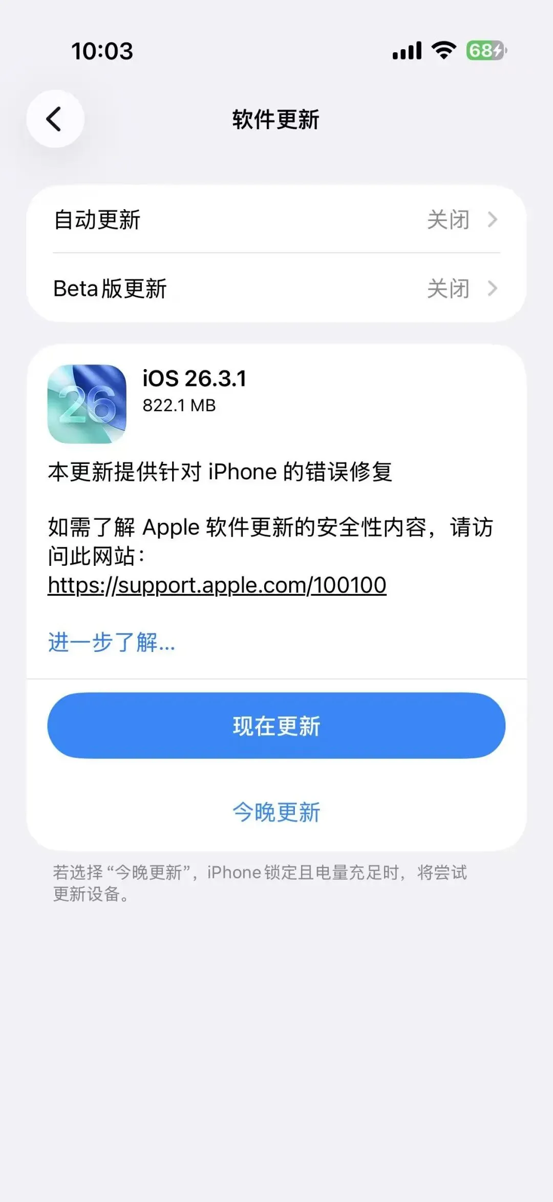 今天,苹果向所有用户推送了 iOS 26.3.1 正式版和 iOS 18.7.6 正式版,前者内部版本号为 23D8133,后者内部版本号为 22H320。