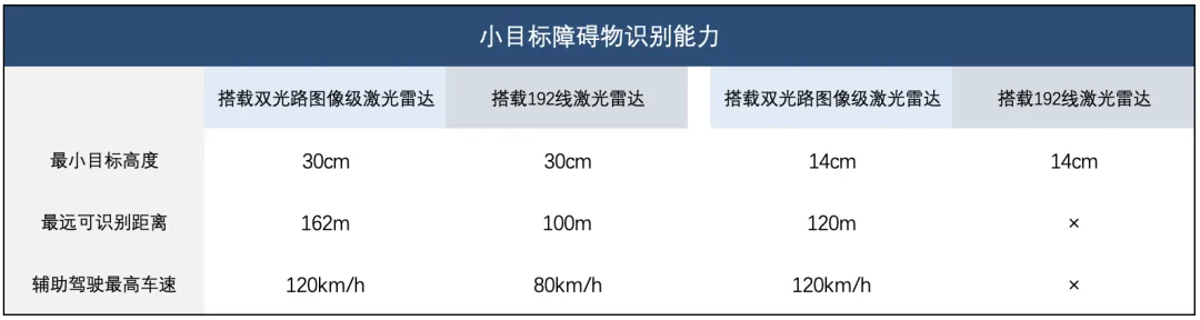 鸿蒙智行给出了这样几组数据对比。面对远距离可识别目标(如小纸箱),实现了120米外发现14cm高度物体;低反射率目标(如轮胎),感知识别距离提升190%;异型障碍物(如倒地锥桶),感知识别距离提升77%。